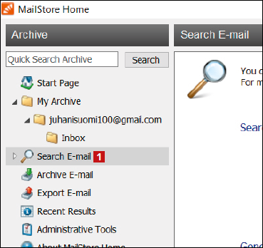 Tietokoneelle arkistoituihin sähköpostiviesteihin on helppo tehdä hakuja. Ohjelman hakutyökalulla voi etsiä suoraan viestejä kaikista arkistoon liitetyistä sähköpostipalveluista, ja hakusana voi olla niin aihekentässä, viestin tekstissä kuin liitetiedostossa. Niinpä oikea viesti löytyy yleensä vaivatta.