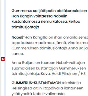 Lukutila aukeaa Chromessa sivun oikealle puolelle. Voit laajentaa lukutilaa vetämällä sen reunasta 4.
