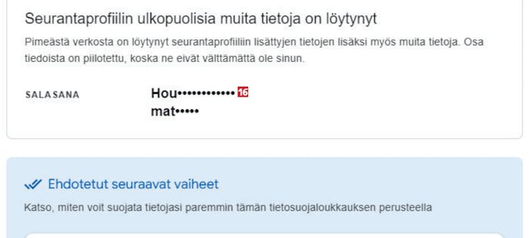Dark web report on loistava Google-työkalu. Sillä voit selvittää, ovatko salasanasi myynnissä pimeässä verkossa. Mikäli niin on käynyt, vaihda ne mahdollisimman pian, ettei kukaan murtaudu tilillesi.