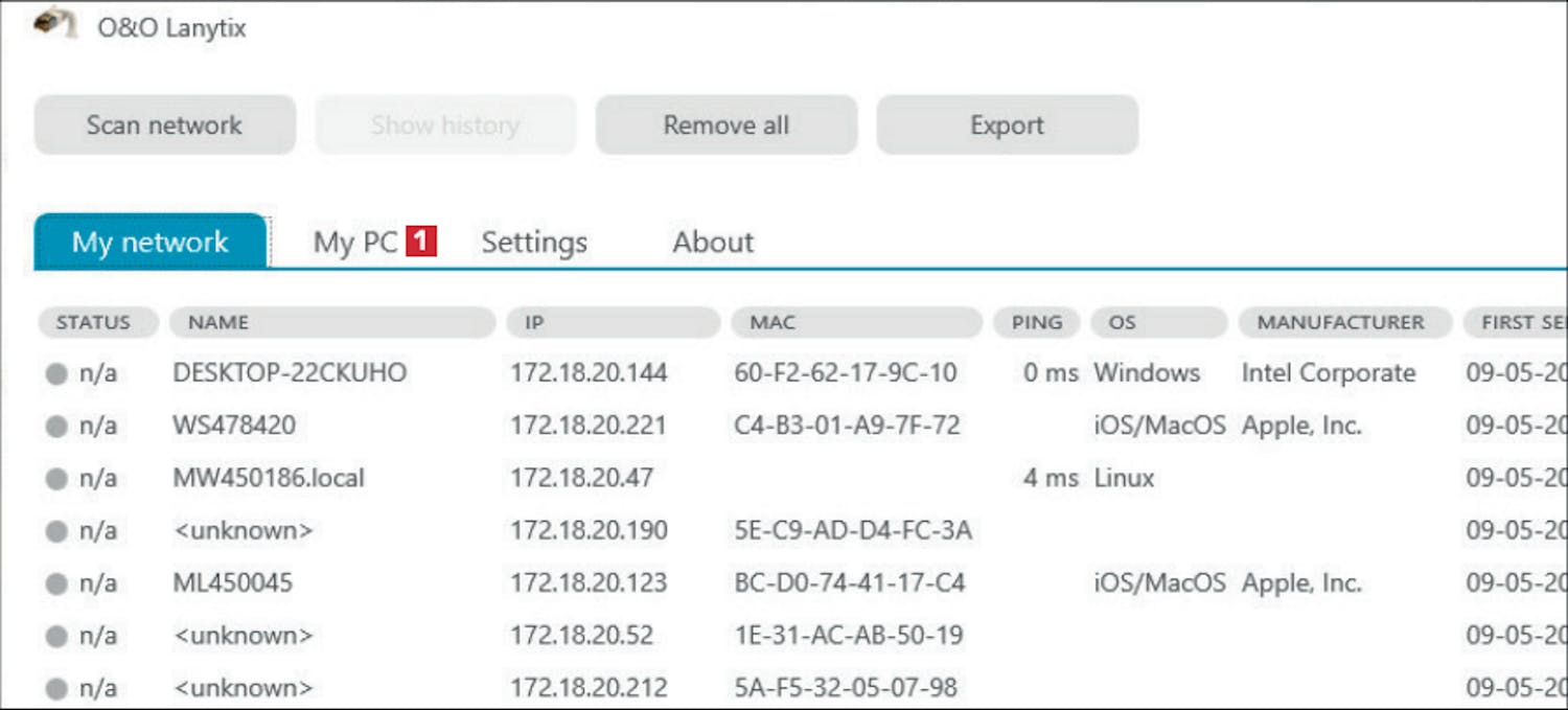 Lanytix on siirrettävä ohjelma, jota voit käyttää ilman erillistä asennusta heti, kun olet ladannut sen Etunurkasta. Ohjelma tarkkailee jatkossa sekä nykyisiä että aiemmin liitettyjä laitteita, kunhan käytät sitä kerran.