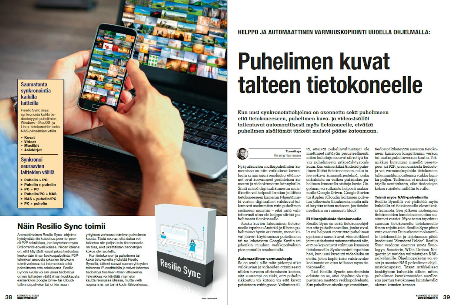 Resilio Sync on sekä tietokoneohjelma että puhelinsovellus, jonka avulla voi helposti määrittää puhelimen synkronoimaan kuvat, videoleikkeet ja muut tiedostot automaattisesti niin, että ne kopioituvat valittuun kansioon tietokoneella. Synkronointi tapahtuu heti, kun uusi kuva tai videoleike on otettu, joten kopio koko valokuvakokoelmasta on aina tallessa myös tietokoneella. Yksi Resilio Syncin suurimmista eduista on se, ettei ohjelma ole riippuvainen mistään verkkopalvelusta.