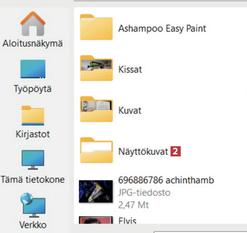 Oikealta puolelta voi sitten etsiä kansion, joka sisältää valokuvat, jotka halutaan näyttää diaesityksenä. Kaksoisnapsauta kansiota 2.