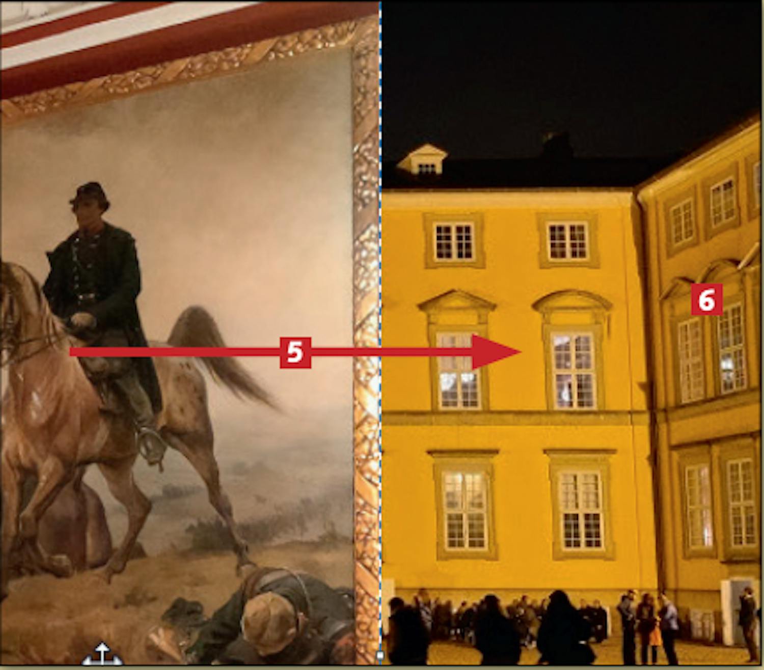 Toinen kuva on nyt lisätty Paintiin. Pidä hiiren painiketta alhaalla ja vedä se 5 ensimmäisen kuvan oikealle puolelle 6 . Säädä tarvittaessa kokoja niin, että kuvat sopivat yhteen.