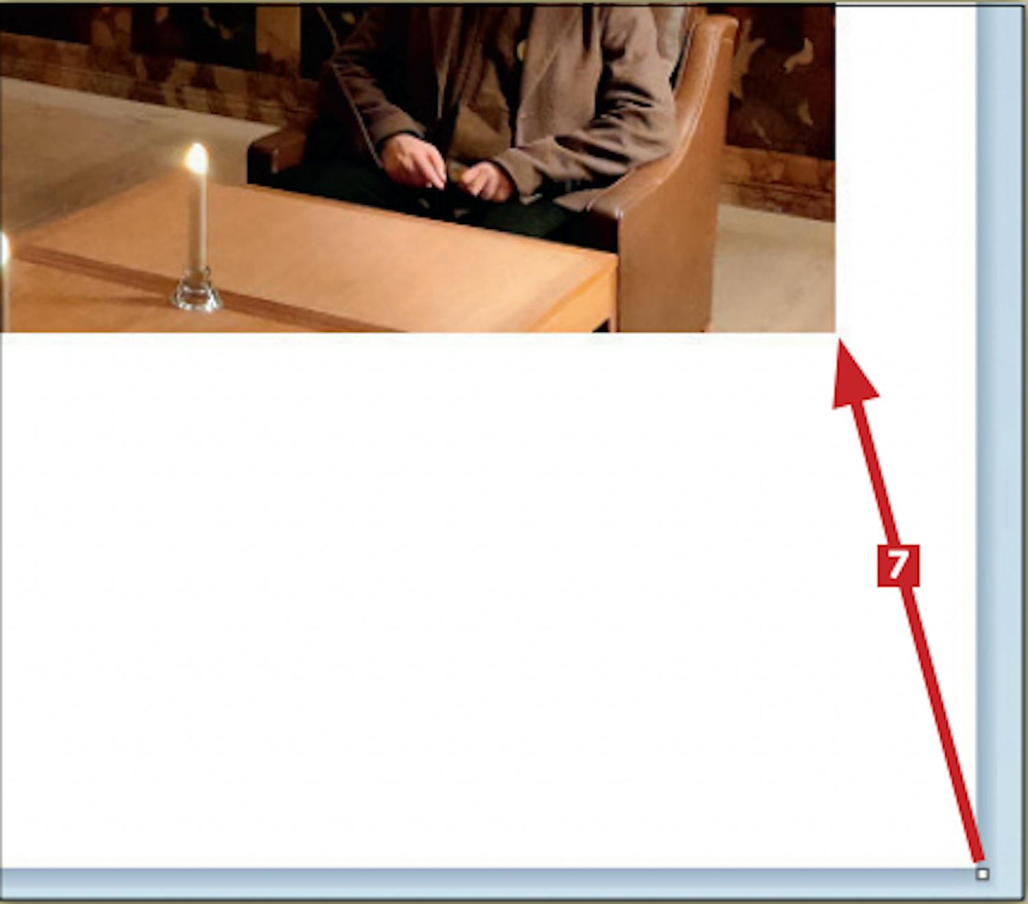 Napsauta valkokankaan kulmaa ja vedä se valokuvan kulmaan 7 , jotta valkoinen tausta katoaa. Tallenna kuva napsauttamalla Tiedosto ja sen jälkeen Tallenna nimellä.