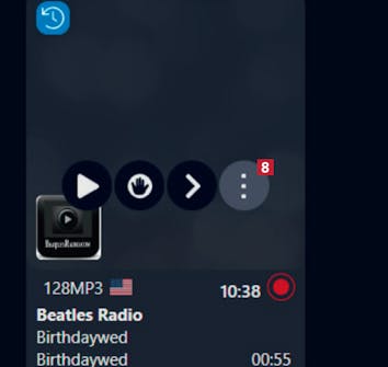 Oikealla paneelissa näkyvät eri ohjelmien tallenteet 5 (tässä on kolme Beatlesiin erikoistunutta kanavaa). Kuuntele kanavaa valitsemalla se ja painamalla välilyöntinäppäintä.