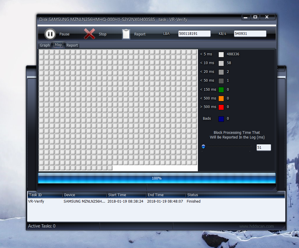HDDScan-ohjelmalla mekaaninen kiintolevy analysoidaan vikojen varalta. Kuten alla olevasta kuvasta näkyy, analyysi näytti kiintolevyllä olevan niin monta rikkoutunutta sektoria, että oli ihme, että voin edelleen käyttää tiedostoja. Jos saat samat tulokset, vaihda levy mahdollisimman pian.