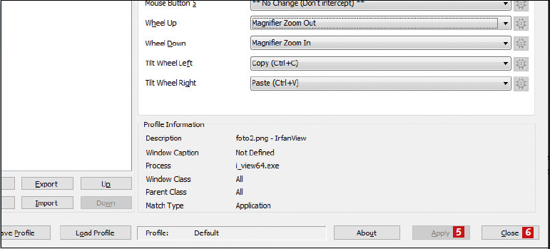 Tässä käydään läpi X-Mouse Button Control -ohjelman käyttäminen. Esimerkissä painikkeet määritetään IrfanView-kuvankäsittelyohjelmalle. Lisäksi tietolaatikossa esitellään joitain hyödyllisimpiä toimintoja, jotka ohjelman pudotusvalikoista kannattaa valita.