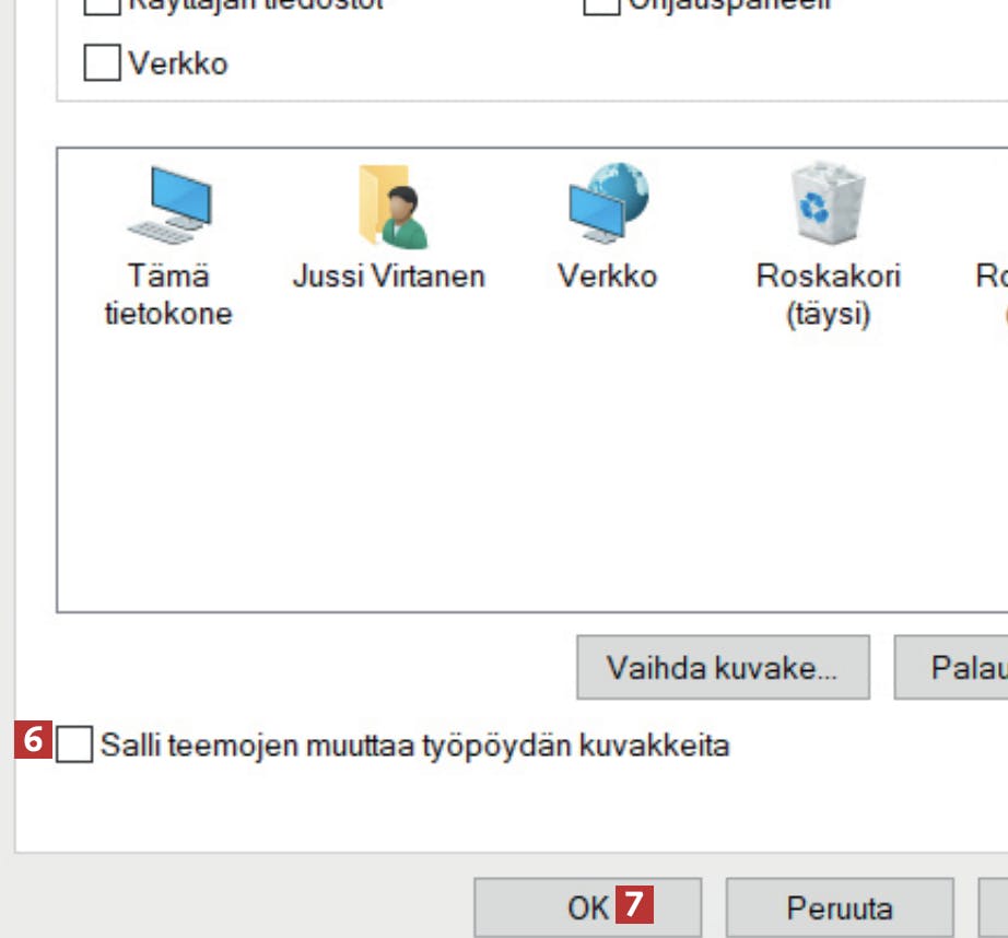 Vaihdan toisinaan teemaa Windows 10:ssä saadakseni uuden kauniin taustakuvan. Olen kuitenkin huomannut, että jotkut teemat muuttavat myös työpöydän kuvakkeita, enkä toivo sitä. Miten voin säilyttää niiden ulkoasun?