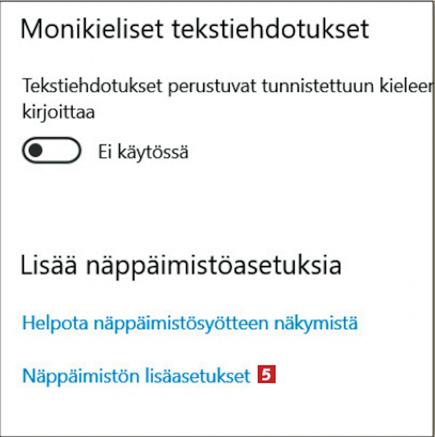 Siirry hieman alemmas ja napsauta kohtaa Näppäimistön lisäasetukset 5 .