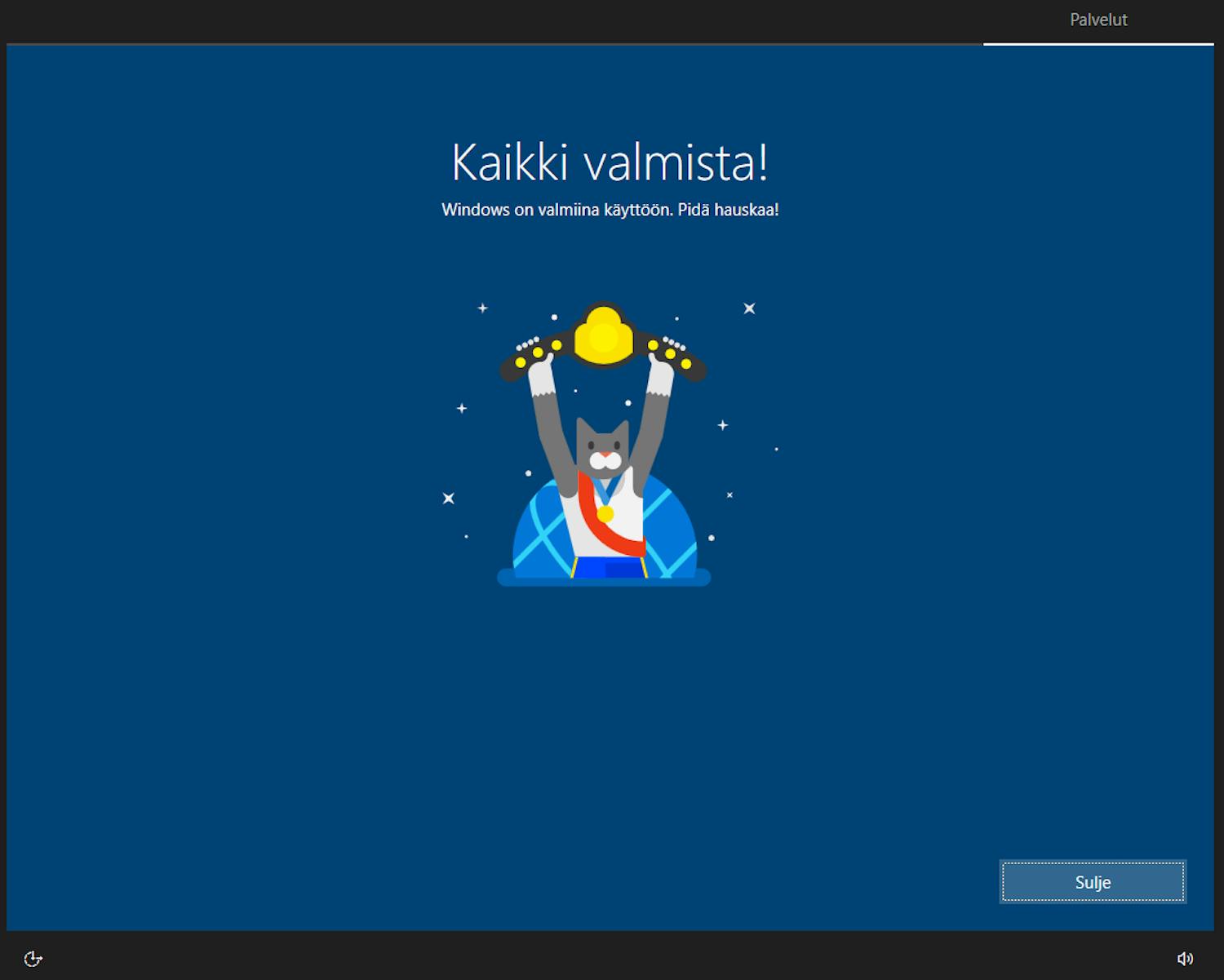 - Hetken kuluttua Windows on valmis käyttöön puhtaalta pöydältä.