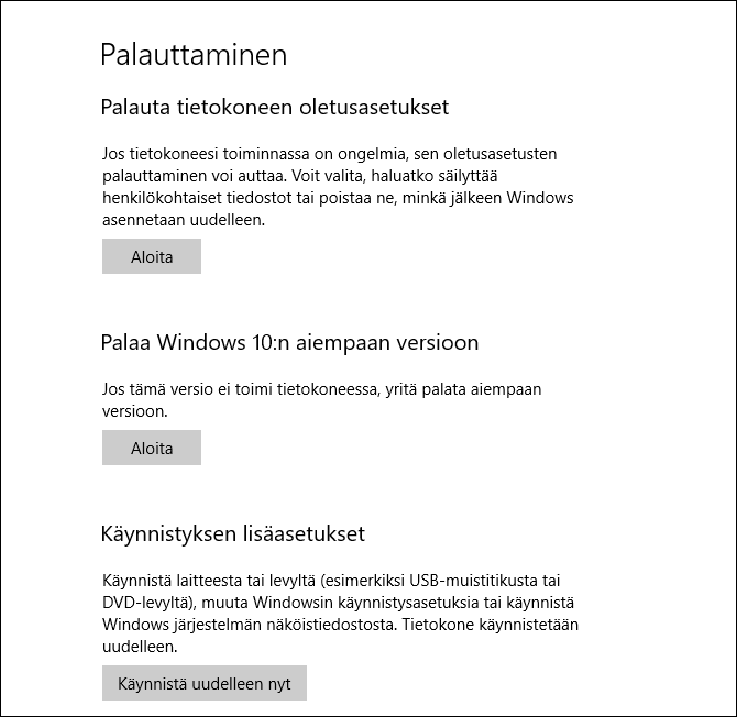 Creators Update -päivityksen voi tarvittaessa poistaa Windowsin palautustyökalun avulla ja palauttaa käyttöön edellisen version.
