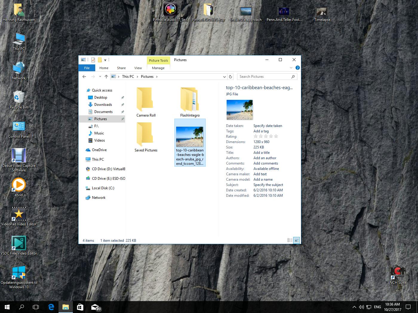 - Jatkossa ikkunan oikeaan reunaan tulee valitun tiedoston miniatyyrikuva ja tiedoston perustiedot. Kuvista näytetään kameran tallentamat tiedot, jotka muuten saisi Resurssienhallinnassa esiin vain kohdevalikon kautta.