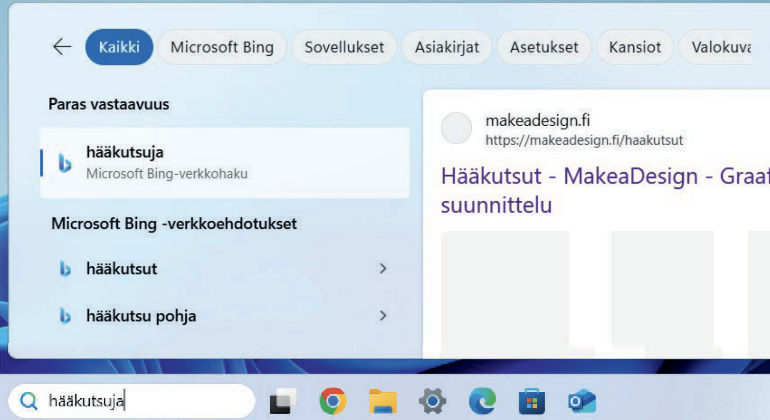 ”Graafikkona käytän työssäni Mac-tietokonetta. Tiedostojen haku on täysin erilainen kokemus kuin kotona Windows-tietokoneella. Windows 11:n haku on lähes aina hidasta ja epätarkkaa, eikä tiedostoja näytetä oikein. Lisäksi hakutuloksiin tulee usein mukaan täysin epäolennaisia sovelluksia, verkkosivustoja ja mainoksia.”