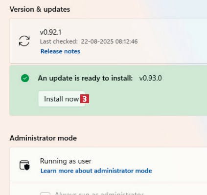 Napsauta Install now 3 saadaksesi Powertoysin uusimman version, joka sisältää uutena ominaisuutena Command Palette -toiminnon.