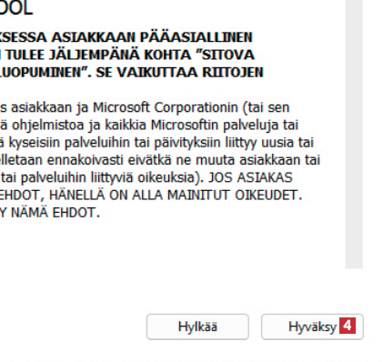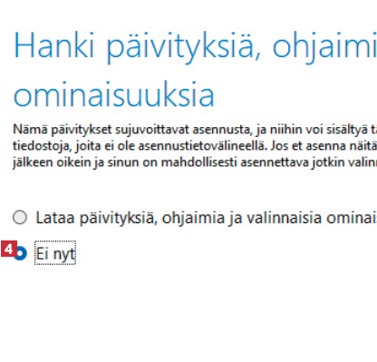 Valitse seuraavasta ikkunasta kohta Ei nyt 4 ja napsauta painiketta Seuraava. Valitse seuraavassakin ikkunassa Seuraava.