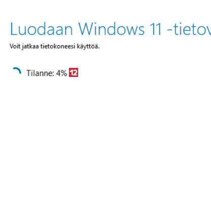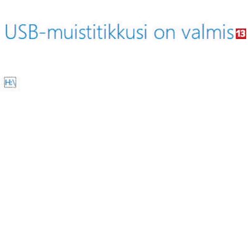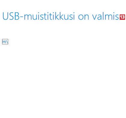 Seuraavassa vaiheessa 12 usb-tikku valmistellaan niin, että käyttöjärjestelmän voi asentaa siltä. Odota rauhassa, sillä tämä kestää noin varttitunnin verran.