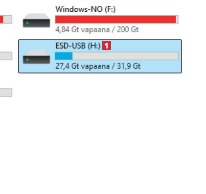 Avaa Resurssienhallinta ja mene kohtaan Tämä tietokone. Napsauta ensimmäistä usb-tikkua 1, jolle aiemmin latasit Windows-järjestelmän uusimman version.