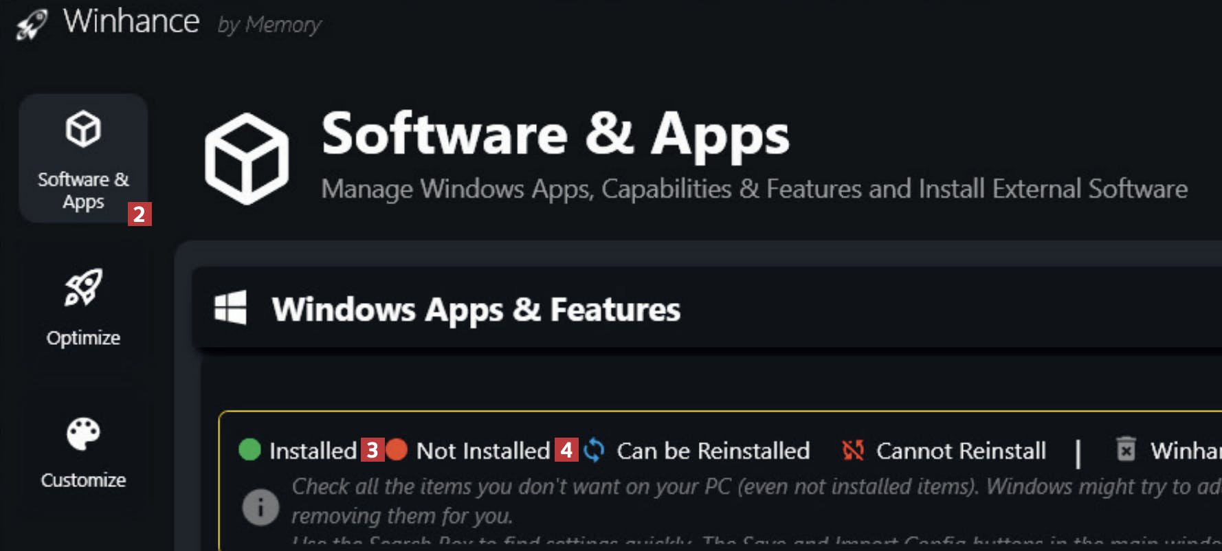 Winhancea voi käyttää myös Windows-ohjelmien asentamiseen. Hyödynnä toimintoa esimerkiksi, jos kadut jonkin ohjelman poistamista.
