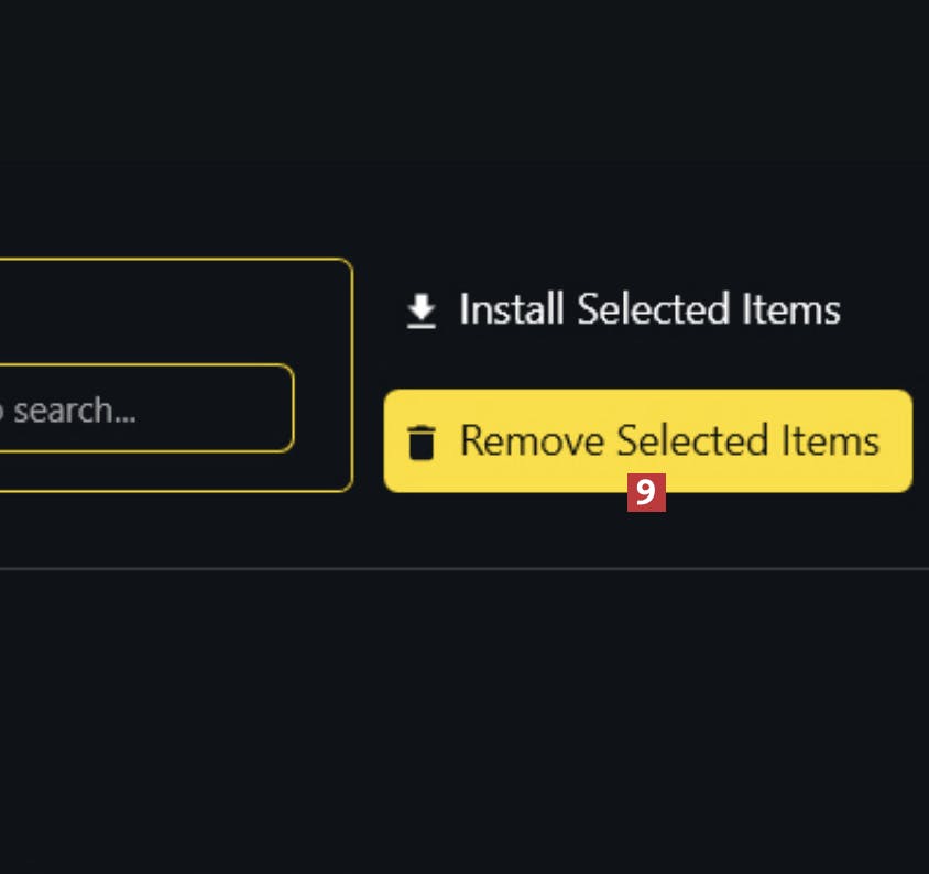 Kun olet tehnut valinnat, voit poistaa ohjelmat napsauttamalla oikeassa yläkulmassa painiketta Remove Selected Items 9.