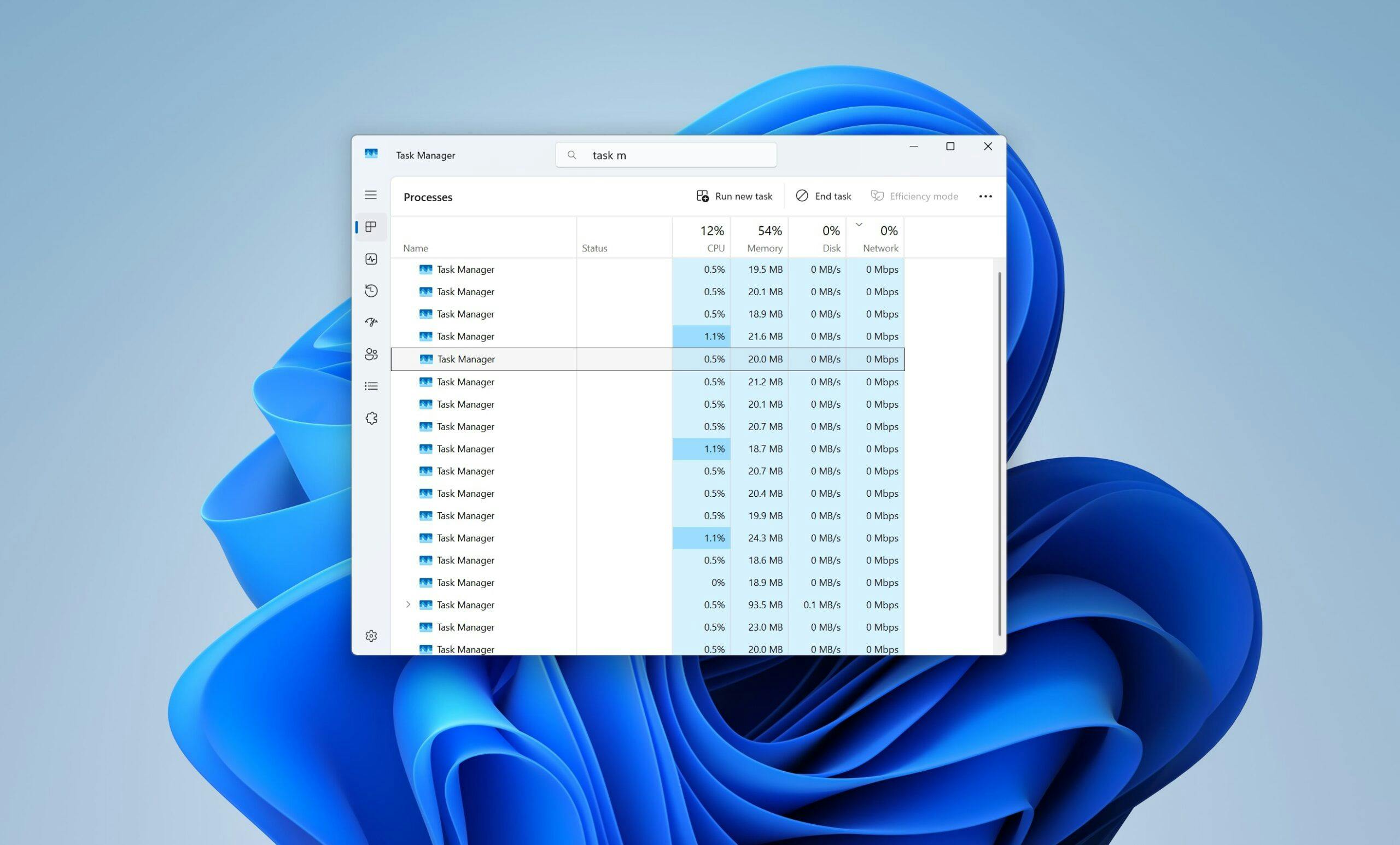 Uusi Windows 11 -virhe tarkoittaa, että tehtävienhallintaa ei voi sulkea ikkunan ruksista, ja siksi se jää kuluttamaan tietokoneen muistia joka kerta, kun sitä on käytetty. Ratkaisuna on sulkea ylimääräiset Tehtävienhallinta-ikkunat (englanniksi Task Manager) tehtävienhallinnasta käsin. Valitse kukin prosessi listalta ja napsauta Lopeta tehtävä.