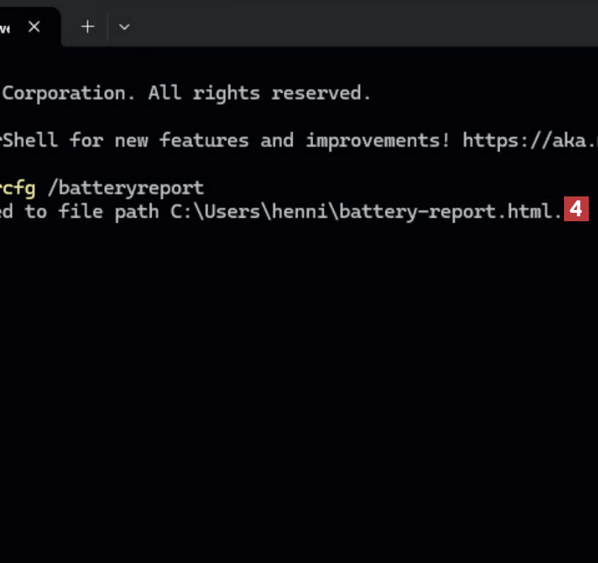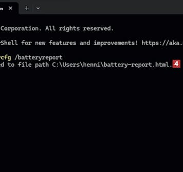 Näet pian, että Windows on tallentanut uuden raportin käyttäjäkansiossasi olevaan tiedostoon battery-report.html 4. Sulje sitten Pääte-ikkuna.