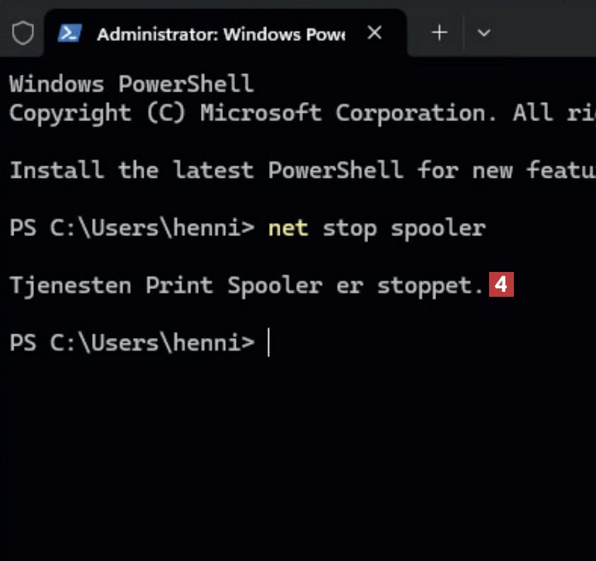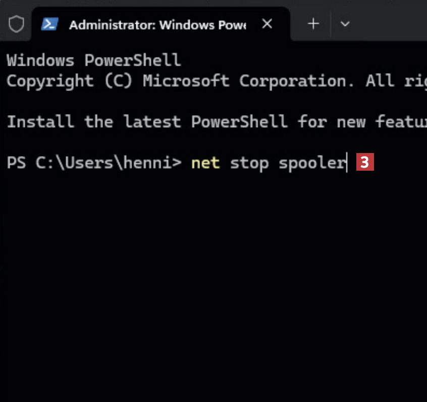 Windowsin tulostuspalvelu on pysäytettävä ennen kuin voit tyhjentää tulostusjonon. Kirjoita komentoriville net stop spooler 3 ja paina näppäimistön Enter-näppäintä.