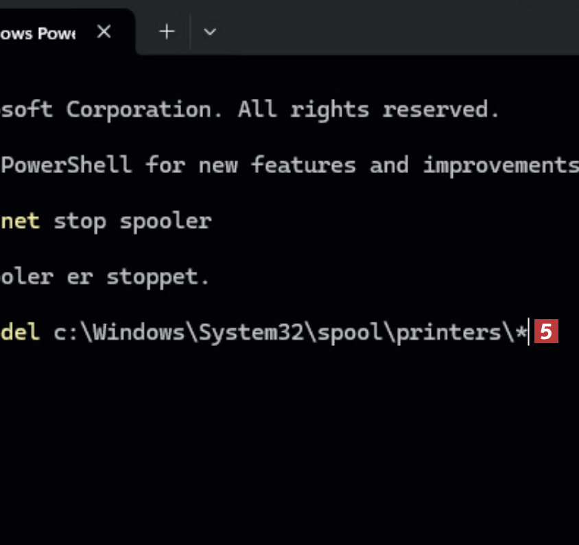 Tyhjennä tulostusjono kirjoittamalla del c:\Windows\System32\spool\printers* 5. Paina näppäimistön Enter-näppäintä.