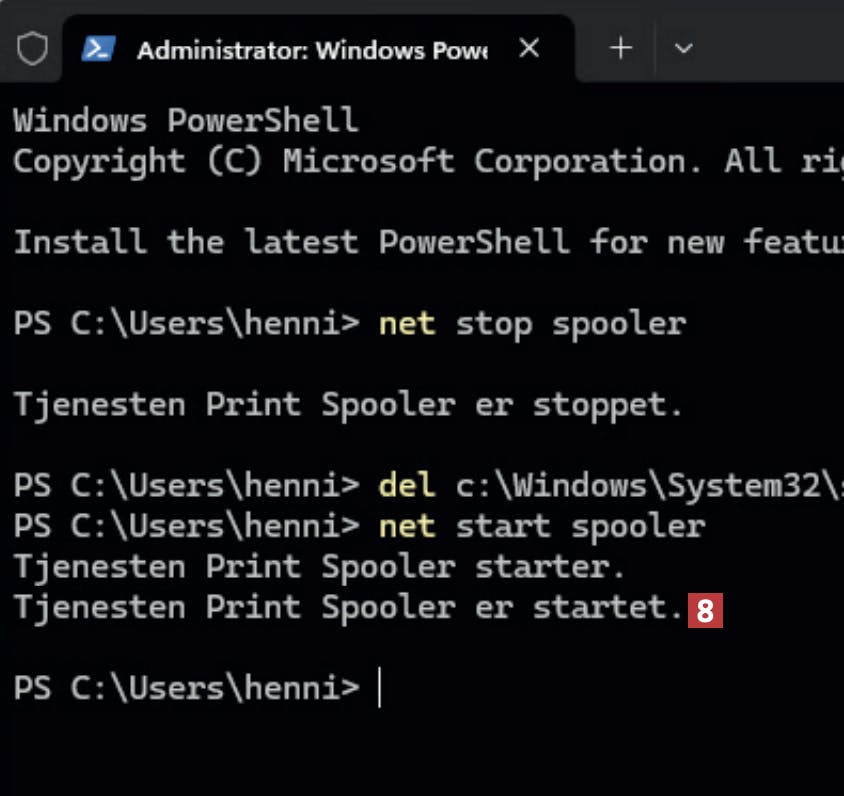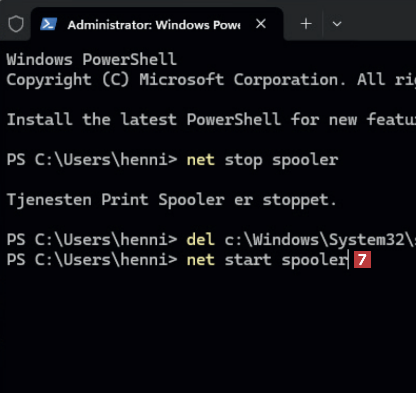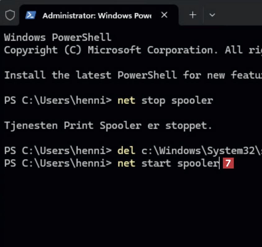 Kirjoita net start spooler 7 ja paina sitten Enter-näppäintä käynnistääksesi Windowsin tulostuspalvelun uudelleen.