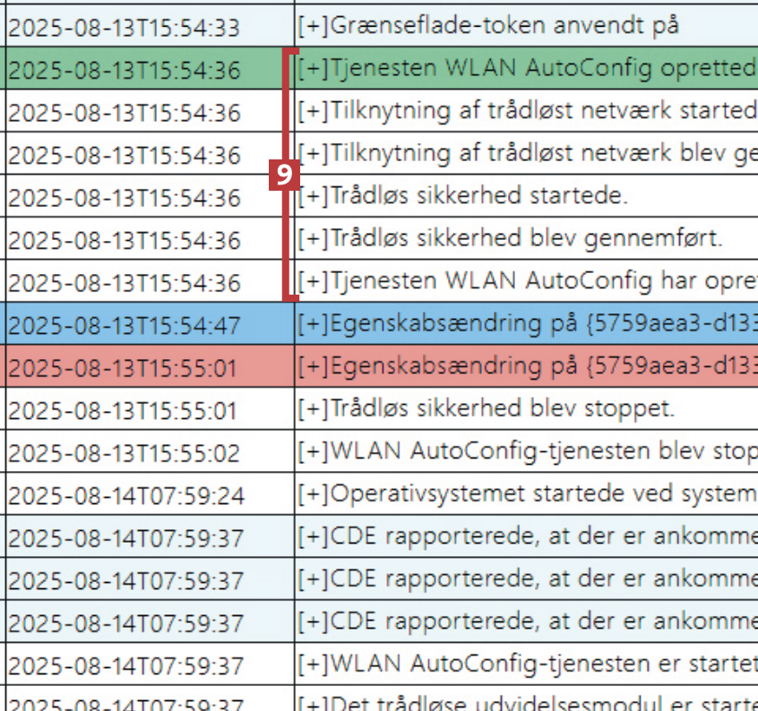 Voit katsoa kaikkia langattomaan verkkoon liittyviä tapahtumia 9. Jos punaisella merkittyjä virheitä on paljon, voit yrittää nollata verkon. Lue ohjeet osoitteesta kotimikro.fi/2520.