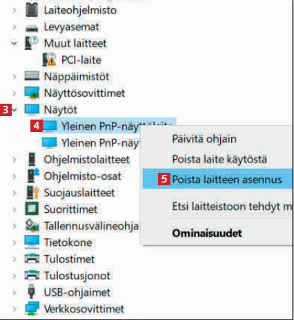 Napsauta sitten nuolta kohdassa Näytöt 3 ja vielä hiiren oikealla kuvaketta 4. Valitse Poista... 5.