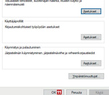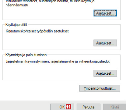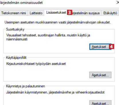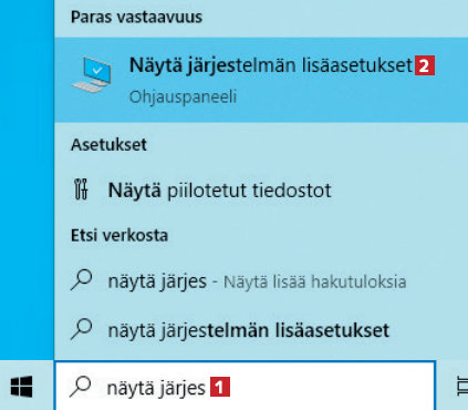 Kirjoita hakukenttään näytä järjestelmän lisäasetukset 1 ja napsauta hakutulosta Näytä järjestelmän lisäasetukset 2.