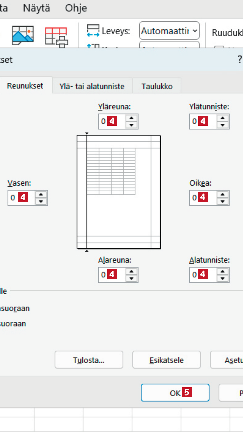 Tulostaessani Excelistä olen huomannut, että suuri osa paperista jää tyhjäksi. Voinko mitenkään asettaa tulostuksen niin, että paperin tila hyödynnetään kokonaan?