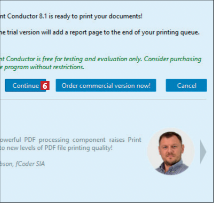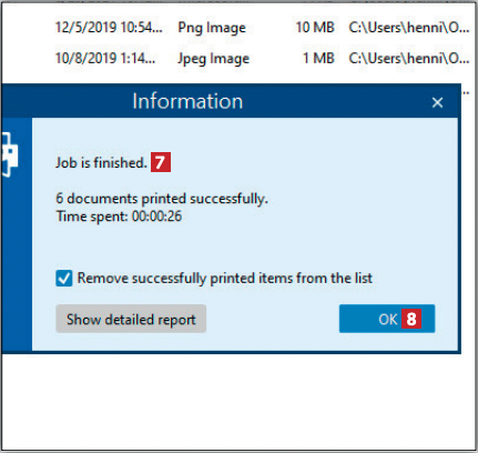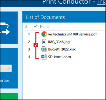 Print Conductor tunnistaa lähes sata eri tiedostotyyppiä, joten jonoon voi lisätä kaikenlaisia asiakirjoja ja kuvia. Koko jonon saa lähetettyä tulostimelle yhdellä painikkeen napsautuksella. Ohjelman ilmaisversiossa viimeisenä arkkina tulostuu tilasivu.