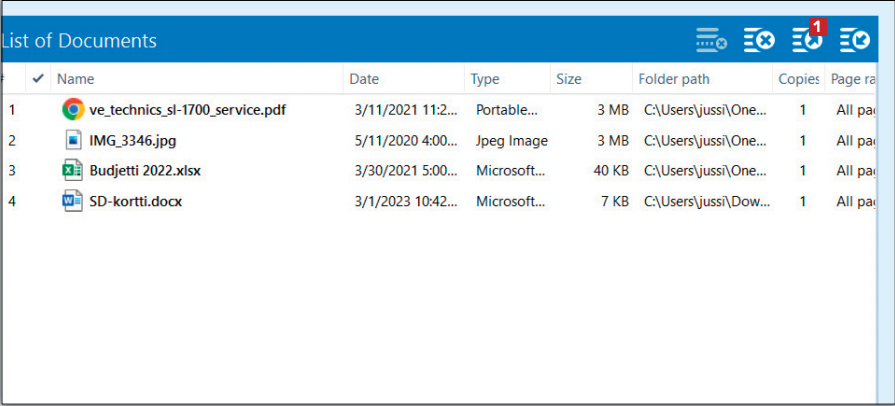 Lisää tulostettavat tiedostot