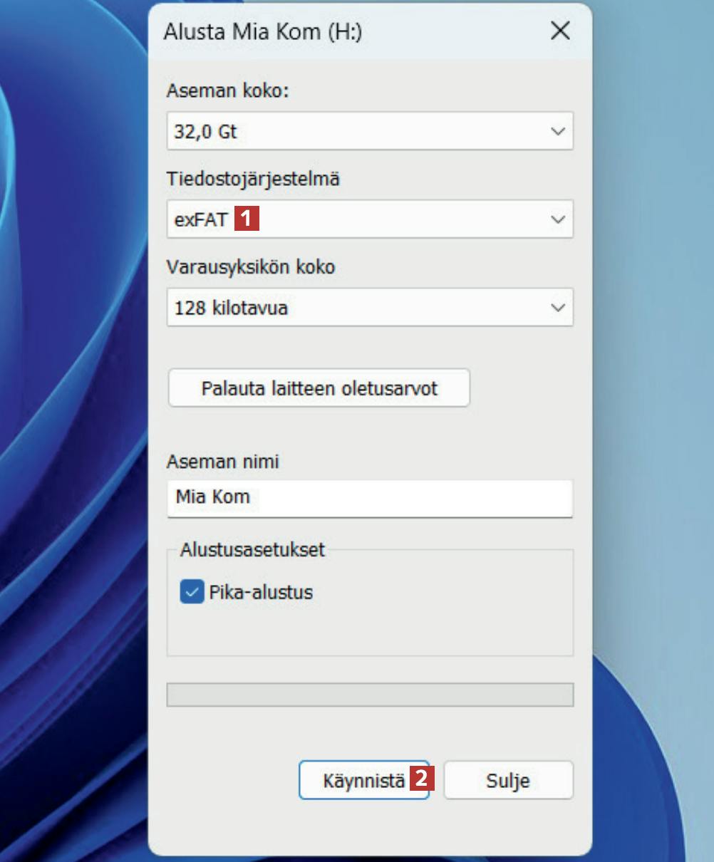 Yritin siirtää kaksi videota 128 gigan usb-muistitikulle, mutta sain ilmoituksen, että tiedostot ovat liian suuria. Mitä teen?