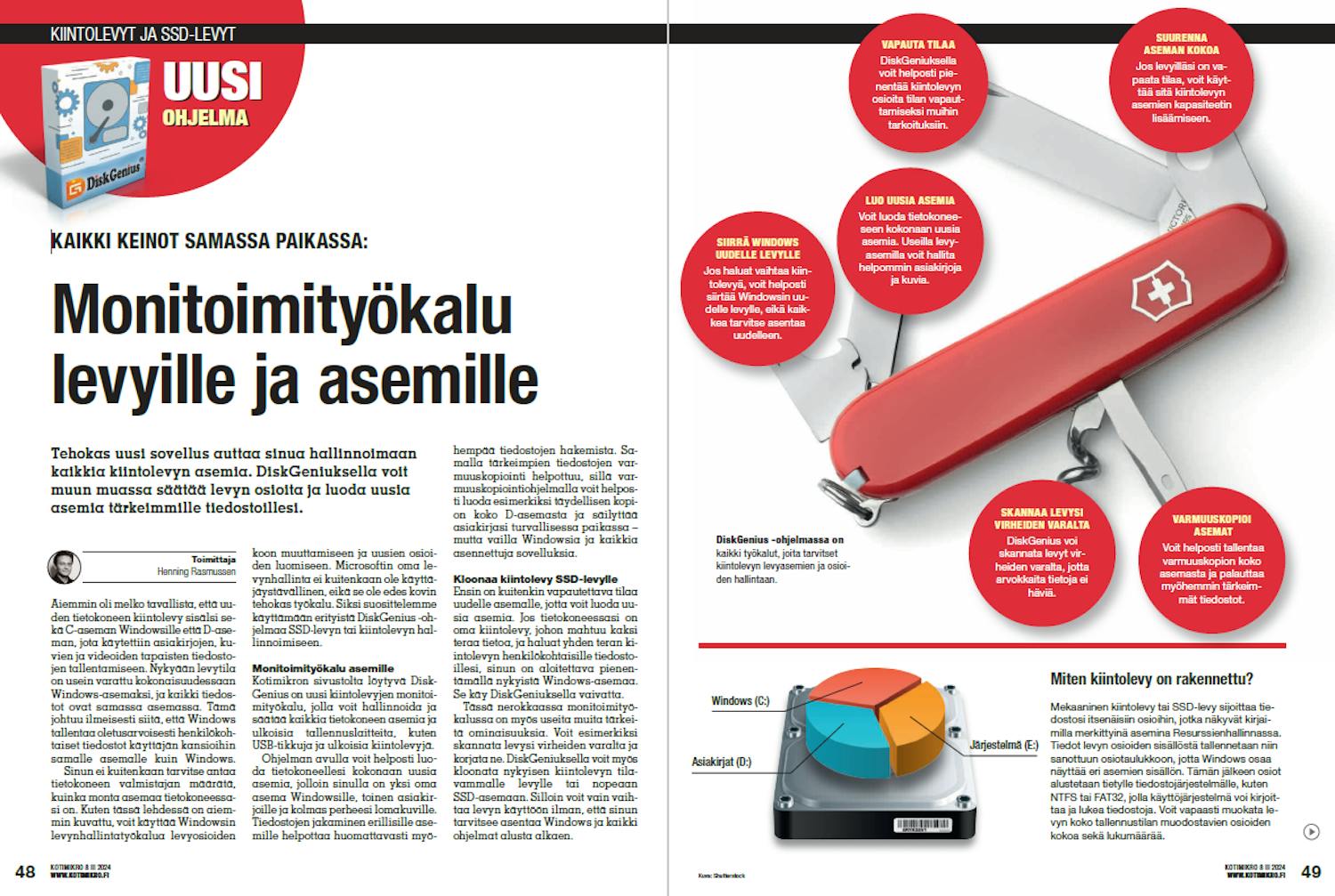 Mikäli haluat päivittää tietokoneeseesi tilavamman kiintolevyn tai uuden SSD-levyn, voit käyttää DiskGeniusta kopioidaksesi Windows-aseman kaikkine sovelluksineen uudelle levylle.