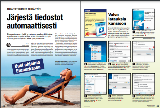 KotiMikron numeron 6/2018 Kysy meiltä -palstalta voit katsoa, kuinka kansioiden määrittely ja tiedostokytkennät tehdään DropIt-ohjelmassa.