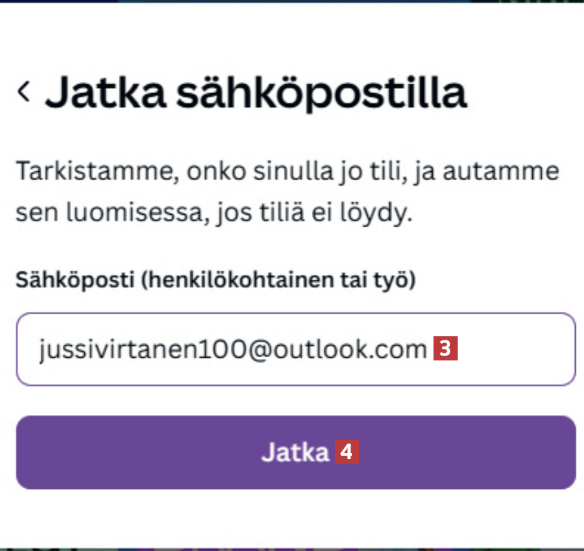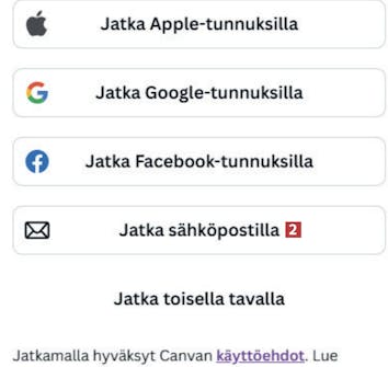Sinun on perustettava Canvaan käyttäjätili. Se ei maksa mitään ja käy käden käänteessä.