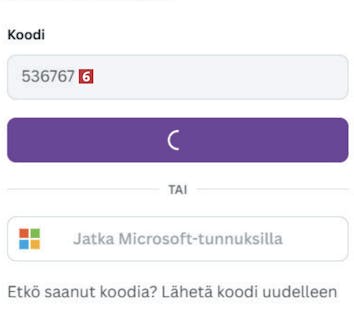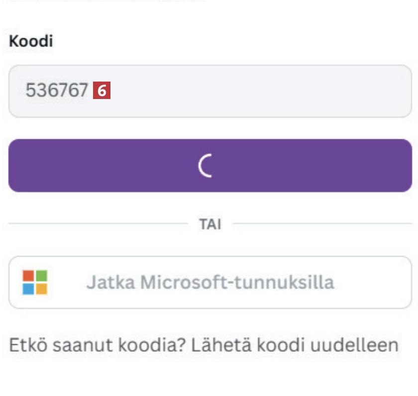 Liitä sähköpostiviestistä kopioimasi koodi 6 Canvan kirjautumissivulle painamalla näppäimiä Ctrl + V tai kirjoita sen kenttään.