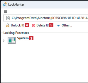 Kun avaat lukitun tiedoston LockHunterissa, sovellus näyttää sinulle, mikä ohjelma tai tai prosessi lukitsee tiedoston. Sitten voit helposti avata tiedoston lukituksen – tai poistaa sen kokonaan.