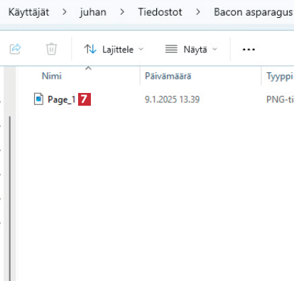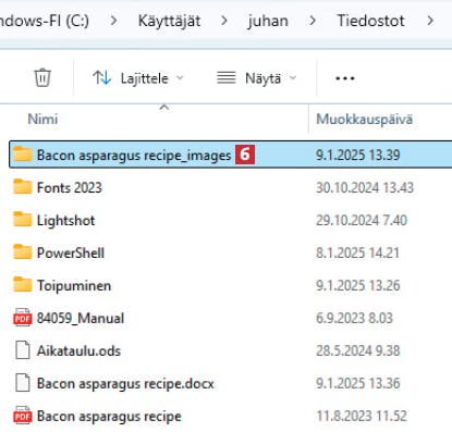Vaiheessa neljä valitsemasi kansio avautuu. Sivuja on useita, joten sovellus on luonut uuden kansion, jossa on kuvia. Sovellus valitsee kansion automaattisesti. Avaa kansio 6.