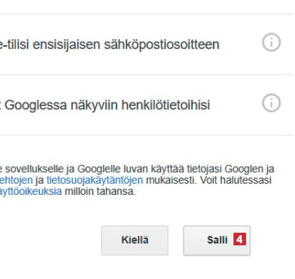 Lopuksi sinun on napsautettava kohtaa Salli 4. Sen jälkeen oletkin kirjautunut Day One -palveluun Google-tililläsi ja voit aloittaa.