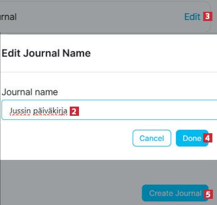 Nimeä päiväkirjasi 2 napsauttamalla Edit-painiketta 3. Napsauta kohtaa Done 4 ja sitten kohtaa Create Journal 5. Päiväkirja on nyt luotu.