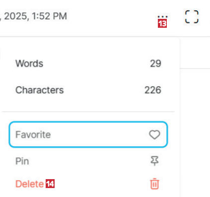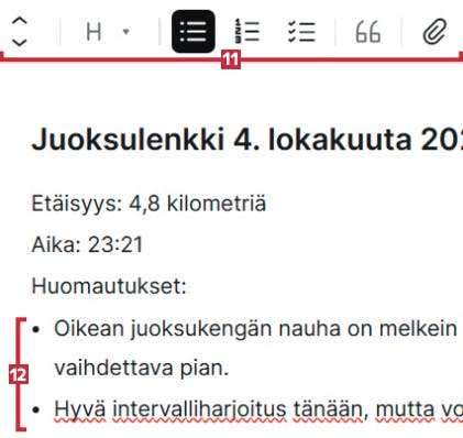 Voit käyttää yläreunan työkaluriviä 11 tekstisi muotoiluun. Tässä päätimme valita luettelon 12, jotta teksti olisi helpommin luettavissa.