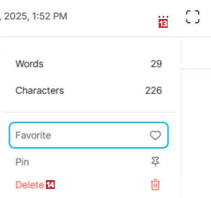 Ohjelman oikealla puolella on tekstityökalu, johon voit kirjoittaa päiväkirjaasi keräämäsi merkinnät ja tekstit. Tässä näytämme, kuinka laadit ensimmäisen tekstisi ja aloitat kirjoittamisen.