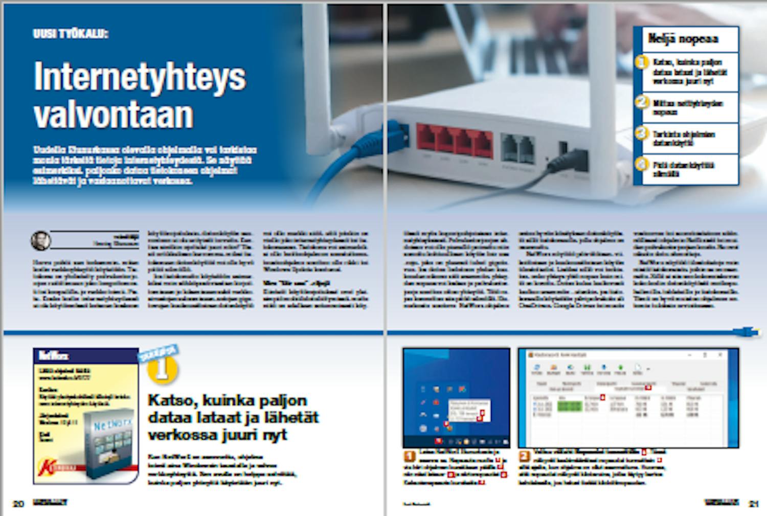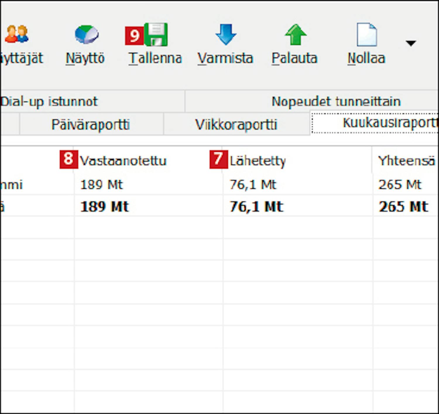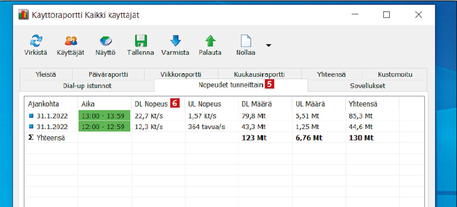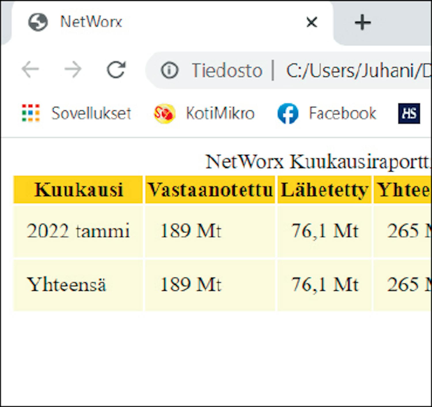 NetWorx antaa yleiskuvan siitä, paljonko dataa verkossa lähetetään ja ladataan yhteensä. Lukemat ilmoitetaan päivä-, kuukausi- ja vuositasolla.