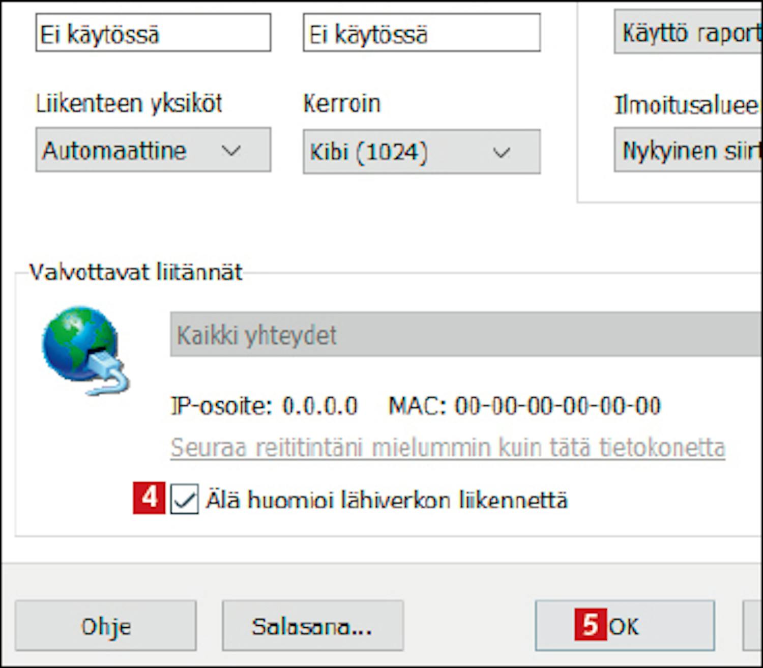 Selain on usein tietokoneen suurin datankuluttaja. Jos huomaat, että jokin toinen ohjelma käyttää yllättävän paljon dataa, skannaa kone virusten varalta.