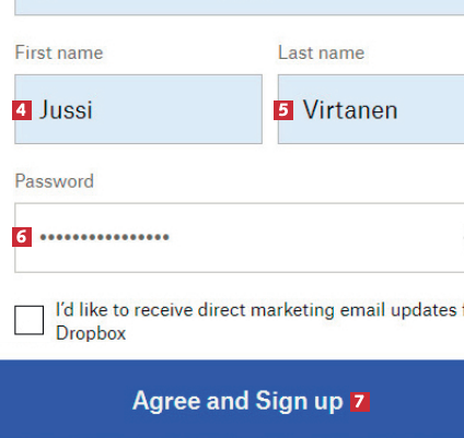 Kun olet ladannut ja asentanut Dropboxin, sinun on luotava ilmainen käyttäjätili ennen kuin voit aloittaa ohjelman käytön. Se käy käden käänteessä.