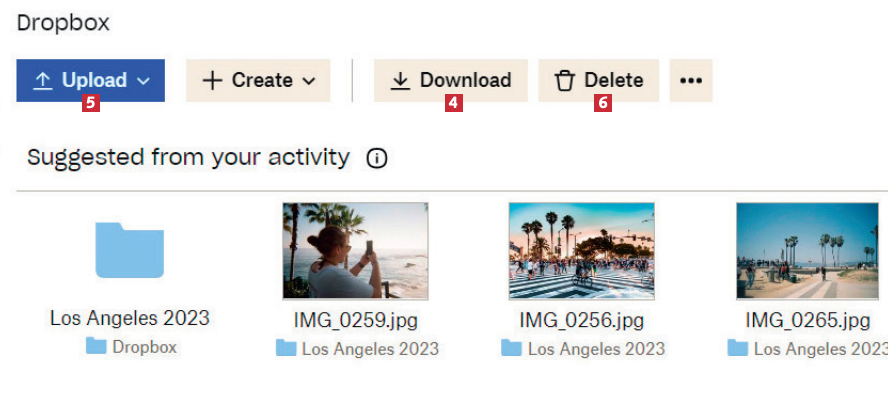 Tiedostojen hakeminen Dropboxista onnistuu helposti selaimessa. Voit hakea niitä millä tahansa tietokoneella tai matkapuhelimella, jossa on internetyhteys.