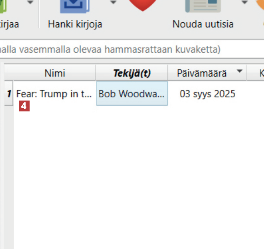 Voit hakea kirjaa nimellä kohdasta Otsikko 3 tai voit etsiä kirjaa kirjoittajan nimellä kohdasta Tekijä 4. Napsauta painiketta Etsi 5, kun olet valmis käynnistämään haun.